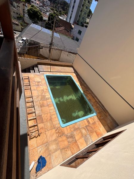 Excelente imóvel com 3 quartos, sendo uma suíte, sala, cozinha, banheiro social, área externa com piscina, terraço com área gourmet e um banheiro.