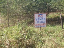 Área com 26.196M², com escritura, semi-plana, medindo 111 metros de frente e fundos e 236 metros de laterais.