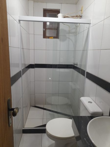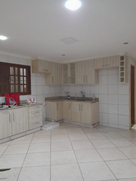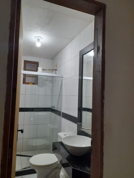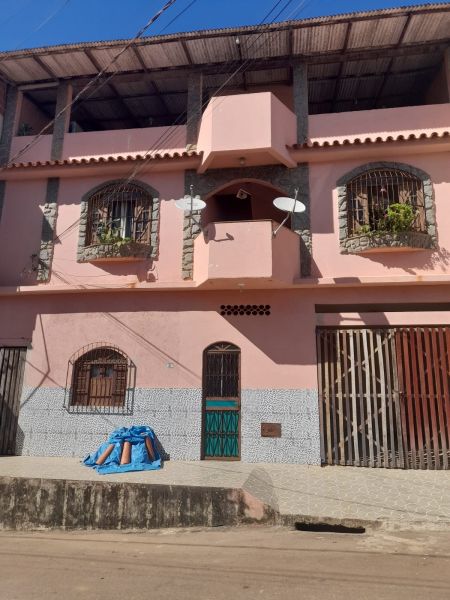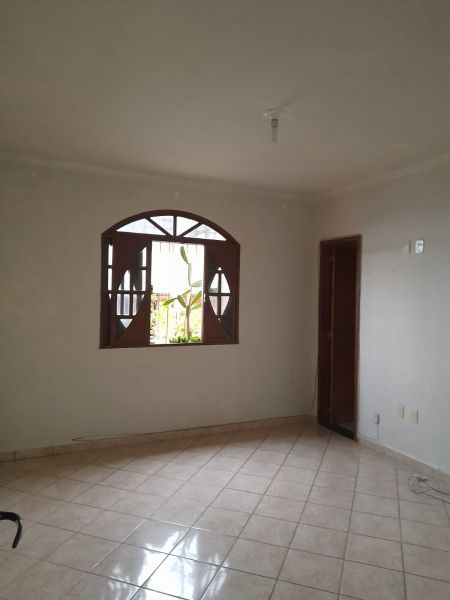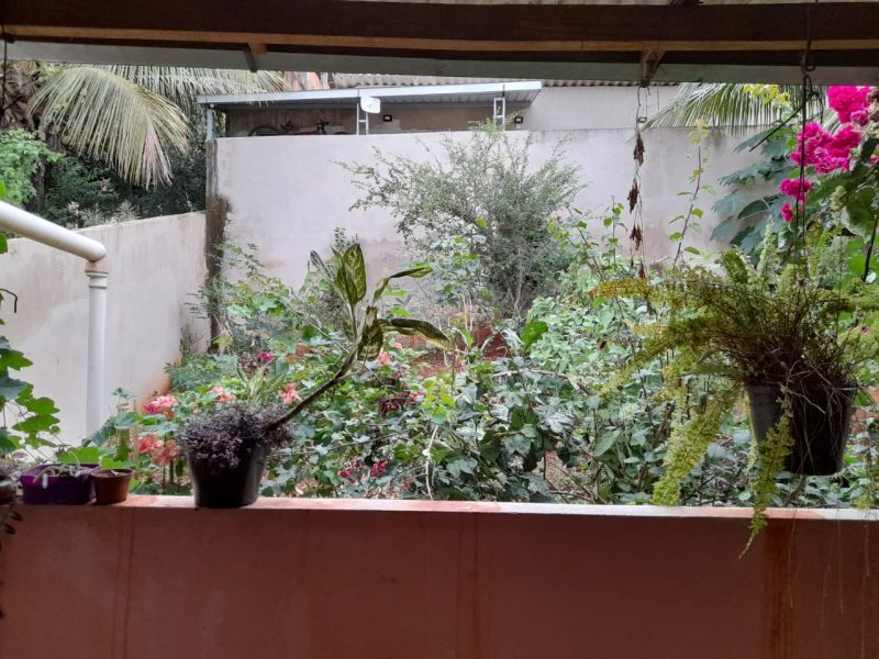 Casa com três quartos (sendo duas suítes), sala, cozinha, banheiro social, garagem, terraço e quintal.